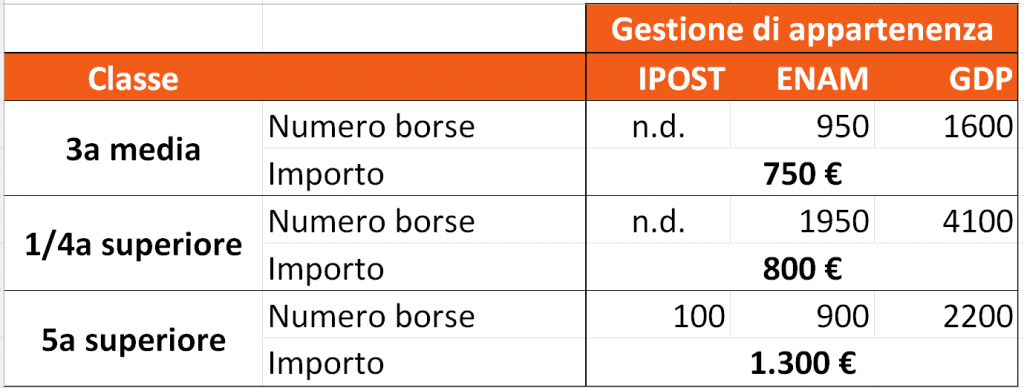 • 750€ per l’ultimo anno della scuola secondaria di primo grado (3a media)