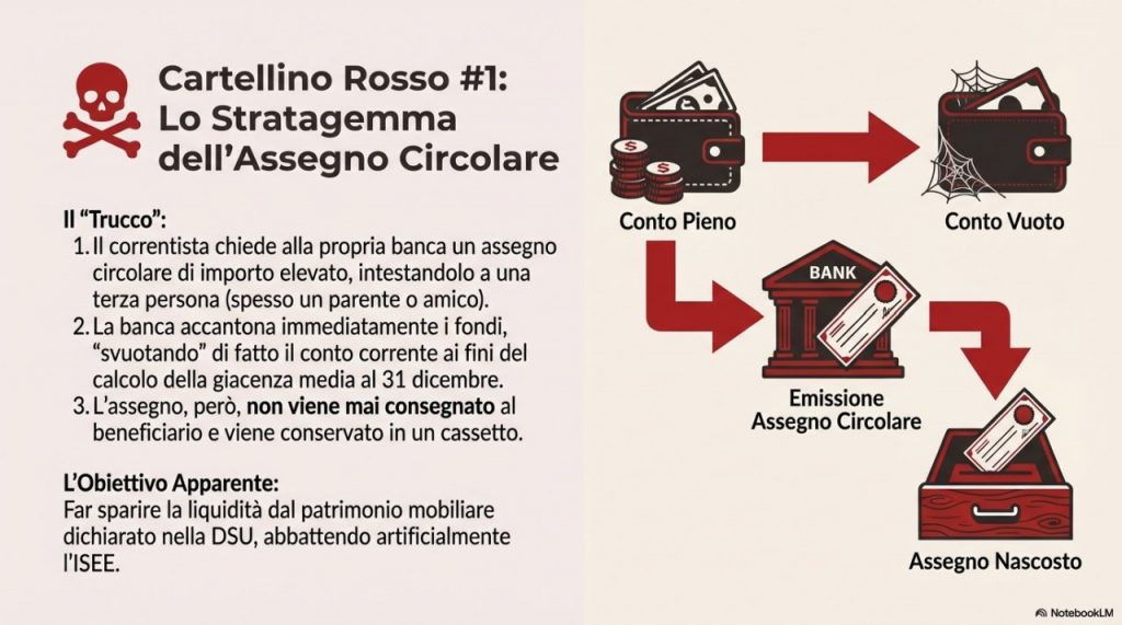 - Esempio pratico: Si emette un assegno da 40.000 €. La giacenza media cala immediatamente poiché i fondi sono congelati dalla banca. Dopo aver ottenuto l’ISEE, l’assegno viene annullato e i soldi riaccreditati.