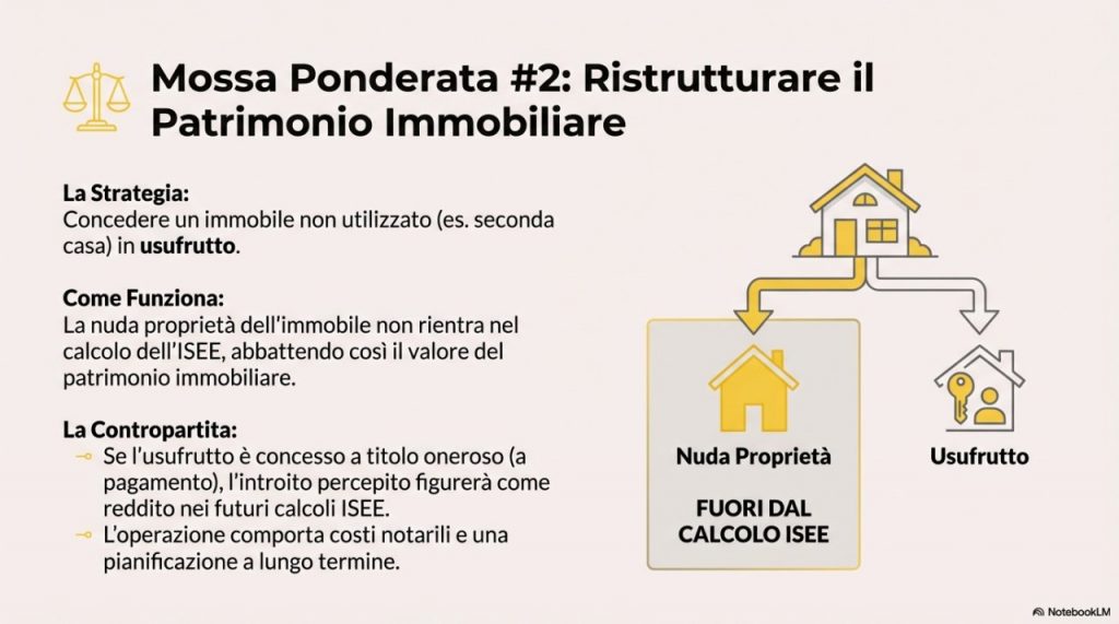 Cedi l’usufrutto di una seconda casa a un terzo, mantenendo solo la nuda proprietà, che non viene conteggiata nell’ISEE.